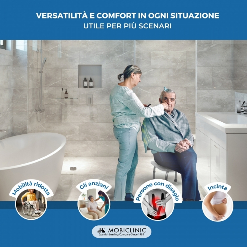 Lo sgabello per bagno è ideale per essere usato in doccia, vasca o su qualsiasi altra superficie del bagno.