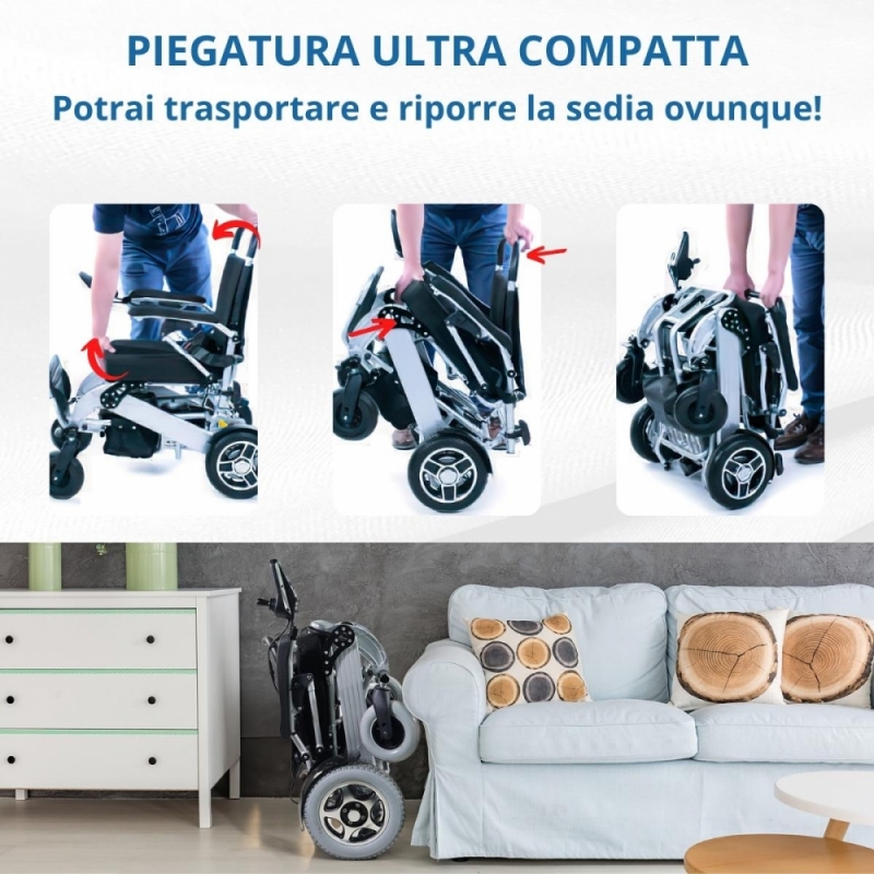 ACCESSIBILE A UNA VARIETÀ DI UTENTI: Il peso totale di questa sedia a rotelle elettrica (senza batterie) è di 24,8 kg. Questo modello può supportare un peso massimo fino a 120 kg.