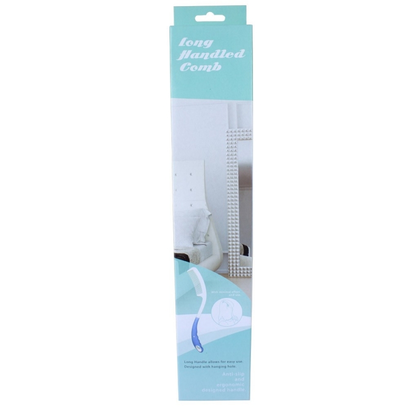 Il suo manico lungo e curvo, realizzato in plastica resistente, si adatta perfettamente alla forma della testa, permettendo di pettinarsi con il minimo sforzo.