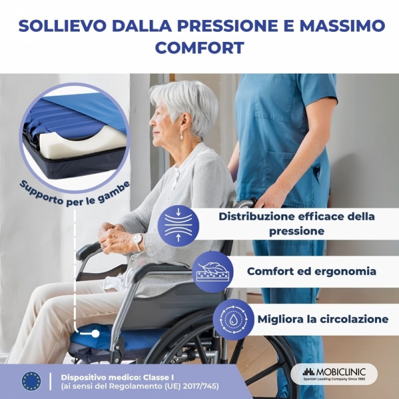 PREVENTIVO: questo cuscino è consigliato per le persone che trascorrono molto tempo sedute e sono soggette a piaghe da decubito.
