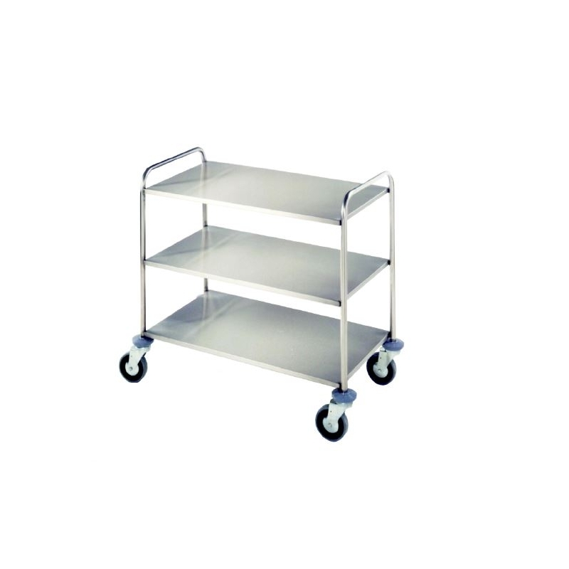 Realizzato in acciaio inox. 3 ripiani di 900x500mm. 125mm ruote