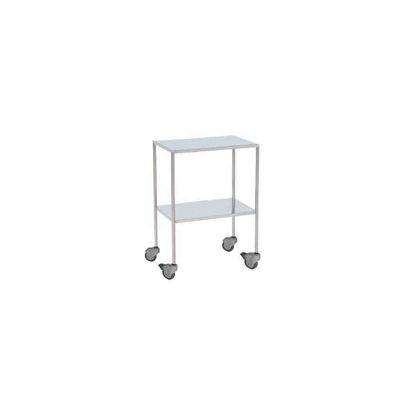 Realizzato in acciaio inox o smaltato ha due ripiani lisci e il telaio superiore