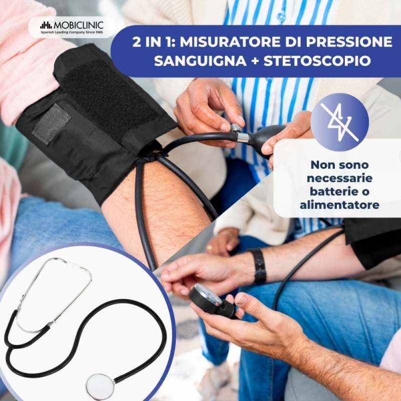 Pack tensiometro da braccio manuale e Fonendoscopio | Stetoscopio in alluminio a doppia campana | Mobiclinic