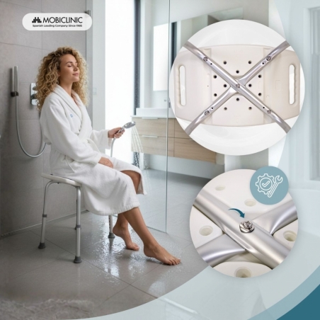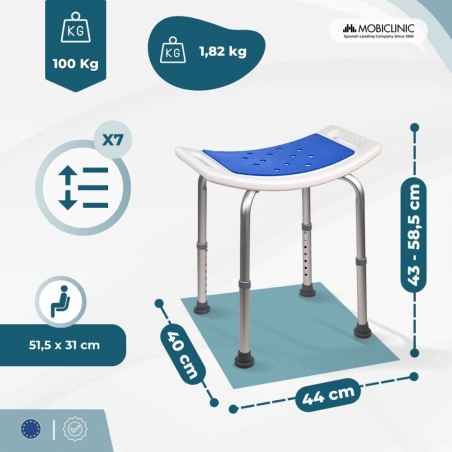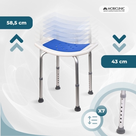 L'altezza è regolabile, consentendo di adattarlo alle esigenze dell'utente o all'altezza di docce o vasche da bagno. Grazie al sistema di regolazione con pulsante e clip, cambiare l'altezza è facile e veloce. La seduta curva è progettata per il comfort e si adatta al corpo dell'utente. Include un cuscinetto antiscivolo in EVA per evitare scivolamenti. Questo cuscinetto morbido, impermeabile e facile da pulire aiuta a mantenere l'igiene quotidiana senza sforzo.