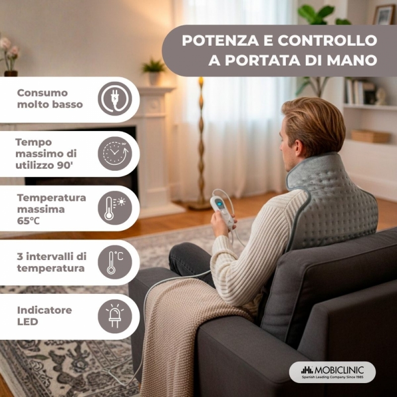 SPESA MINIMA : La potenza di questo pad è di 100 W, che è simile o inferiore al consumo di una lampadina elettrica o la metà di quello che consuma un televisore. Quest'inverno riduci i consumi della bolletta elettrica grazie a questo pad elettrico.