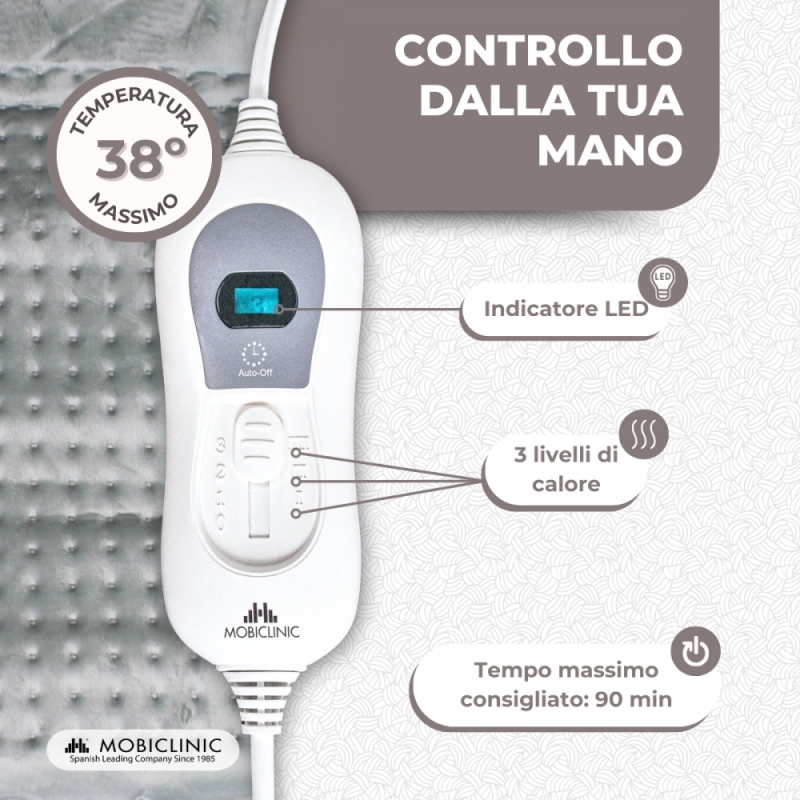 SPEGNIMENTO AUTOMATICO: questo termoforo è dotato di uno spegnimento automatico come sistema di sicurezza. Il suo spegnimento automatico funzionerà dopo 90 minuti di accensione. È progettato per offrirti quella tranquillità che il tuo riposo richiede
