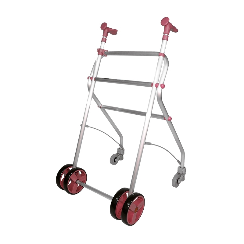 Deambulatore per adulti | Alluminio |4 ruote | Pieghevole | Corallo | Rollatino| Forta