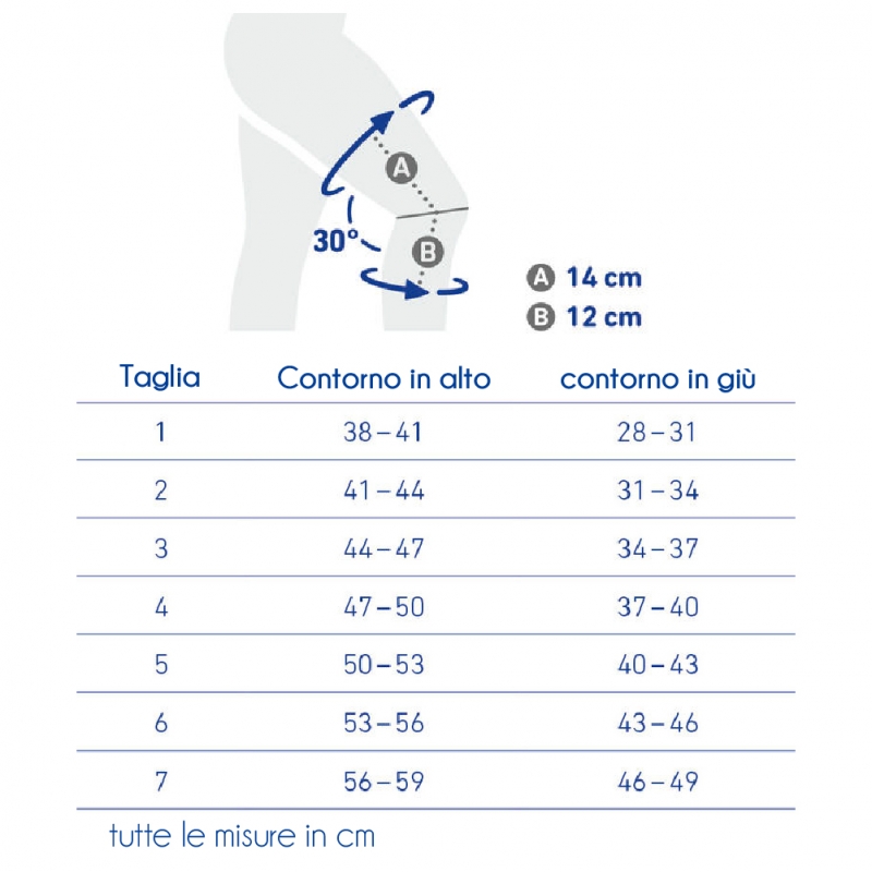 La taglia si basa sulla circonferenza della coscia, la prima misura è la circonferenza della parte superiore e la seconda la circonferenza della parte inferiore sotto.
