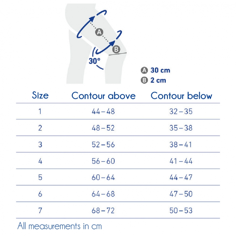 Scelta della dimensione: La dimensione dipende dal contorno della coscia, la prima misura è il contorno superiore e la seconda il contorno inferiore.