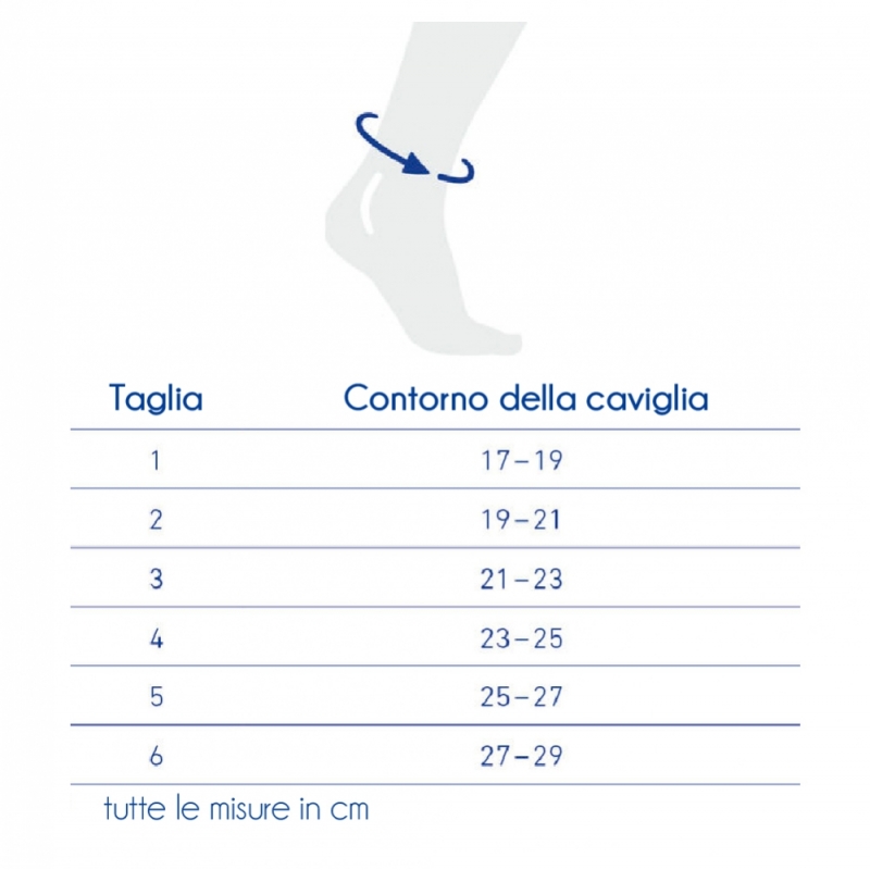 La dimensione dipende dalla circonferenza della caviglia in centimetri.