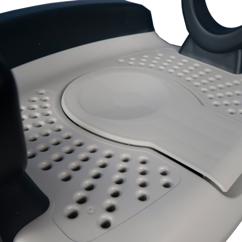 La sedia AQ-TICA ha 2 funzioni: vi aiuta nella cura del corpo e nell'igiene personale. Può essere usata come sedia da toilette o come sedia da doccia, ed è disponibile in grigio e senza schienale. AQ-TICA è fornito come un kit in una scatola e può essere facilmente assemblato senza attrezzi.