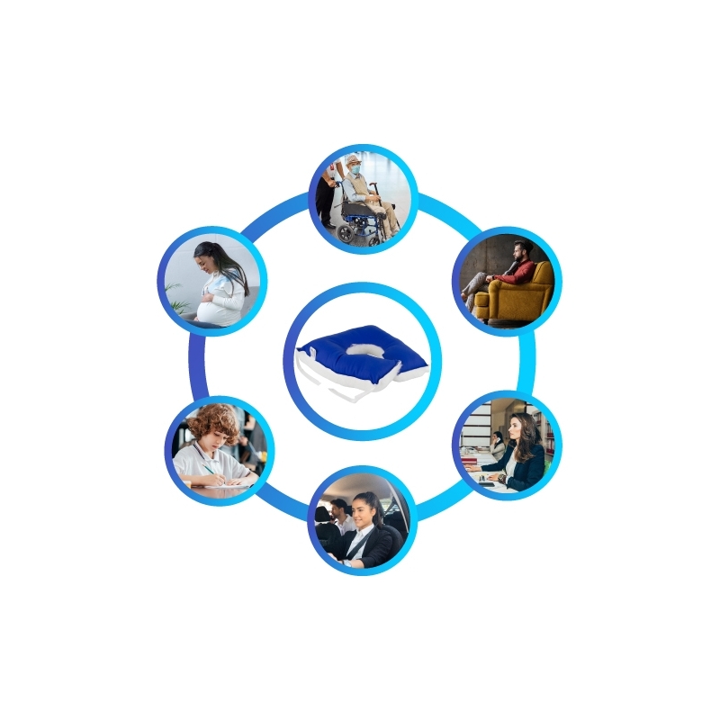 INDICAZIONI: Grazie al foro che presentano nella loro zona centrale, possono essere utilizzati anche per alleviare il dolore negli interventi chirurgici nella zona anale, perianale, postpartum, nonché il dolore che si manifesta nella zona sacrococcigea, ischiatica, glutea e perineale.