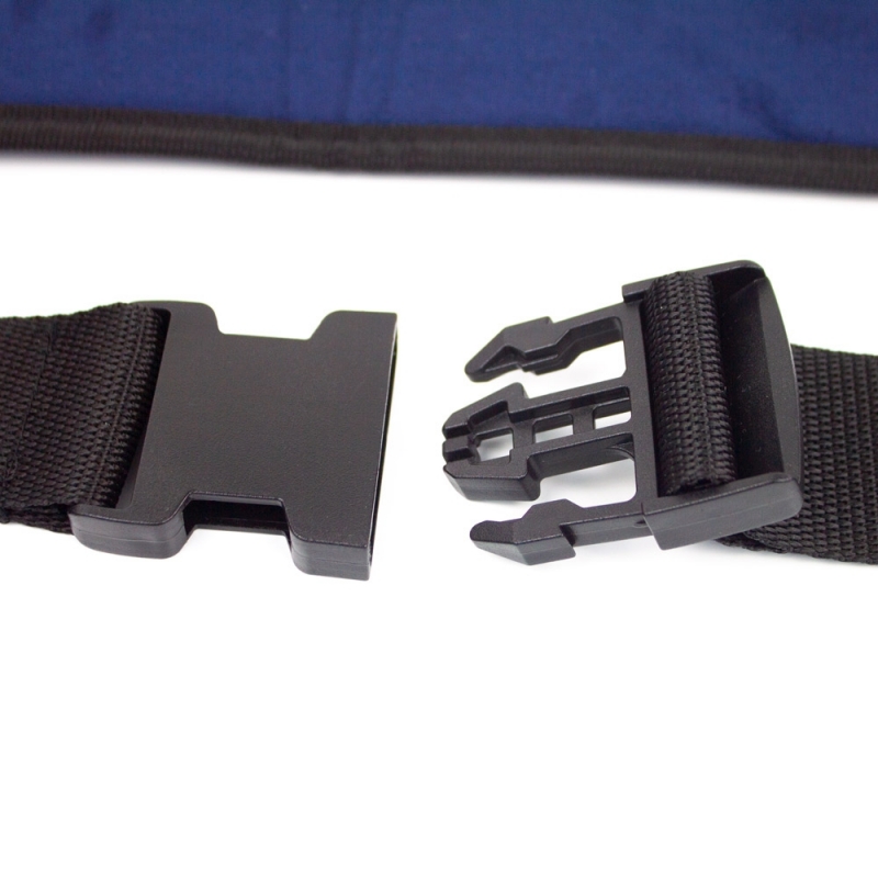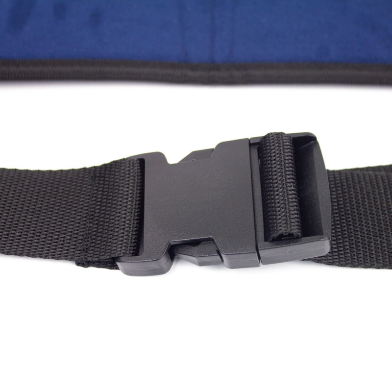 Questa cintura con area di supporto addominale e pelvico è adattabile alla sedia o alla poltrona. È realizzato in tessuto imbottito soft touch e bordato con nastro di polipropilene per fornire una maggiore resistenza. La parte interna è fatta di un piacevole tessuto di cotone, che evita lo sfregamento della pelle del paziente. La parte esterna è fatta di poliestere impermeabile che permette una pulizia facile e veloce.
