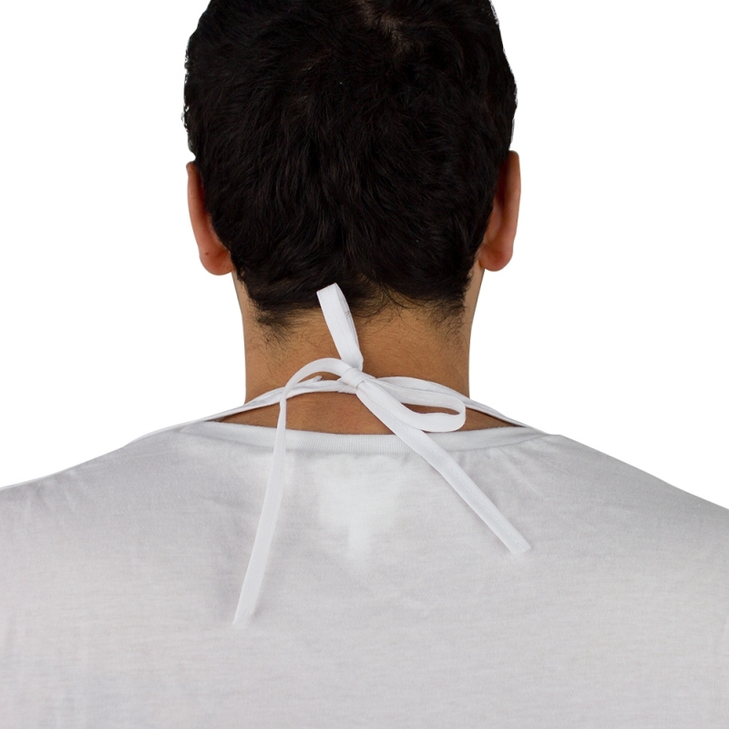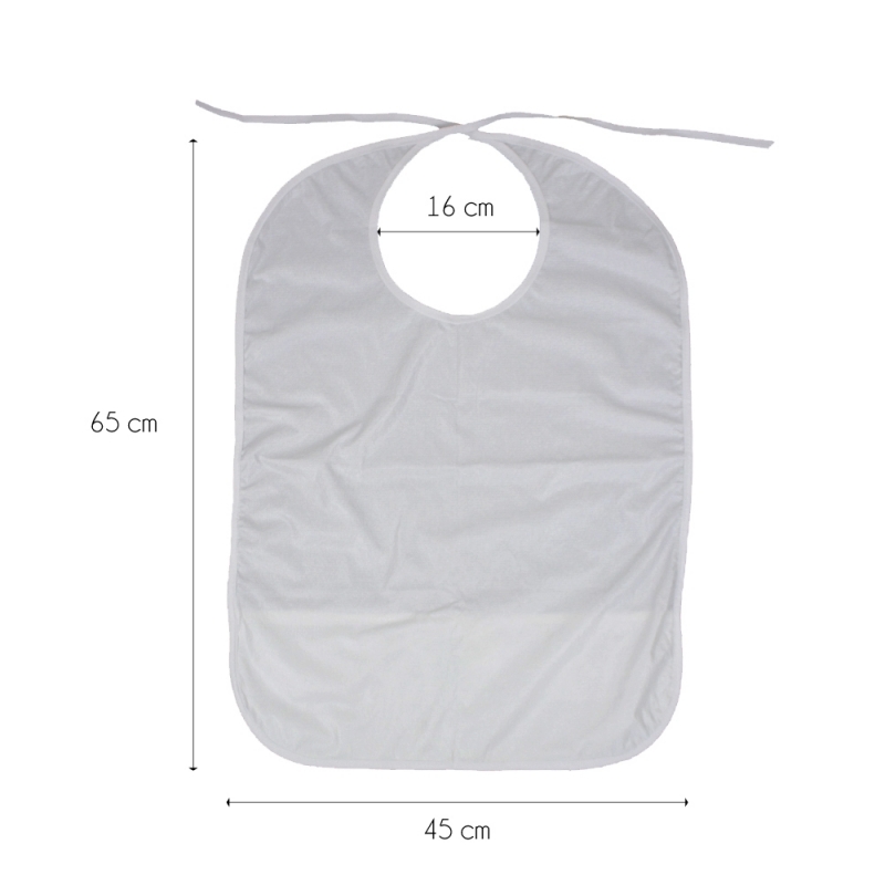 Questo è un bavaglino impermeabile per adulti, fatto di cotone e poliestere con una pellicola di PU. È molto facile da indossare e da regolare. Poiché questo bavaglino per anziani è lavabile, potete riutilizzarlo tutte le volte che ne avete bisogno.