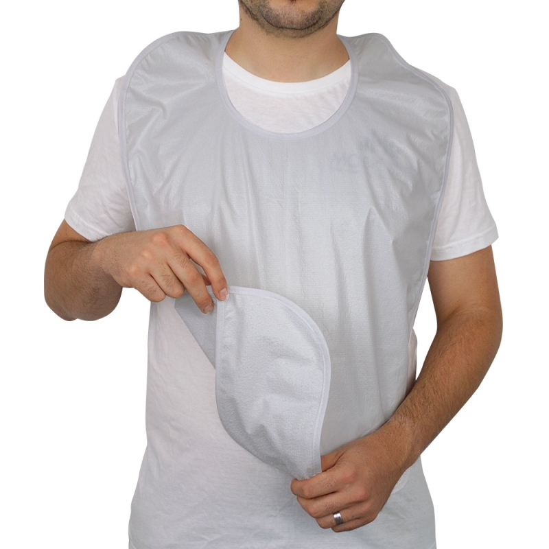 Bavaglino per adulti| Di spugna | Tasca | Riutilizzabile | 65 x 45 cm | Taglia unica