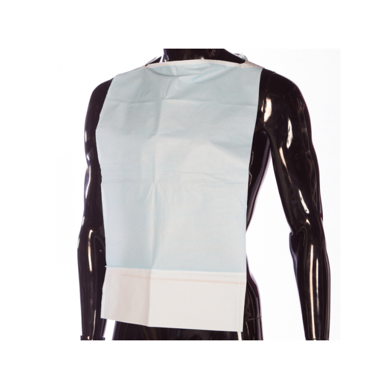 Questa scatola contiene 500 bavaglini monouso in carta e polietilene ad alta densità. Questi bavaglini per anziani sono per uso industriale, sanitario o anche di consumo.