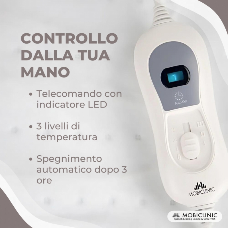 Scaldasonno singolo | Elettrico| 3 livelli di temperatura| Spegnimento automatico| Lavabile| 150x80 cm|Bianco| Mobiclinic