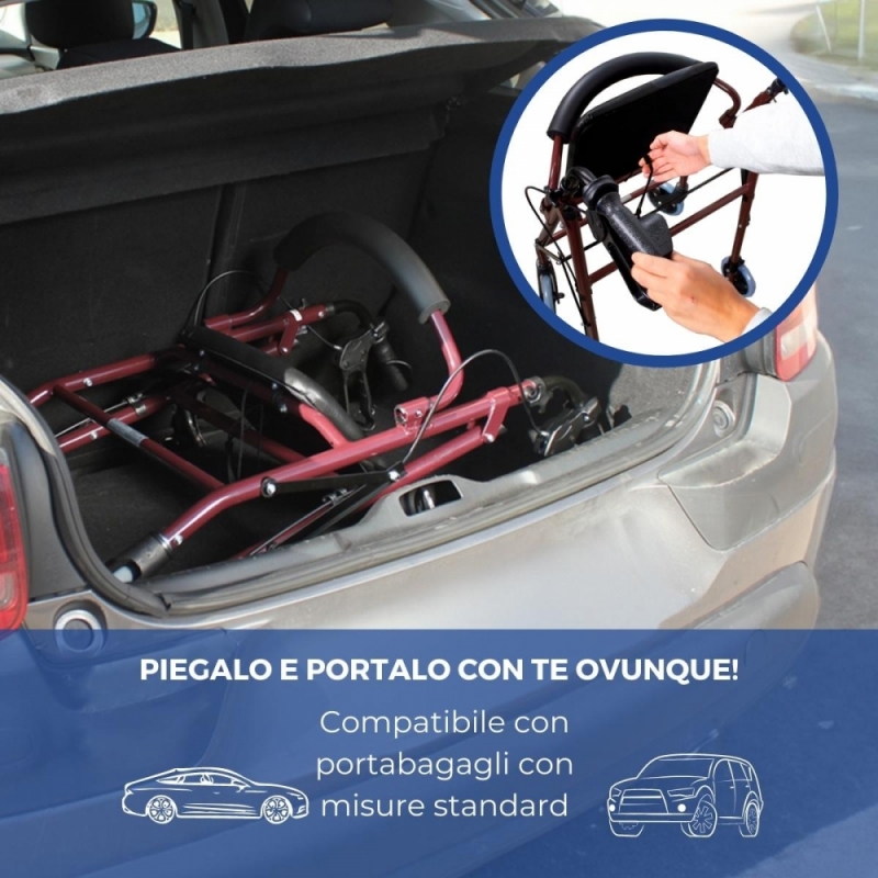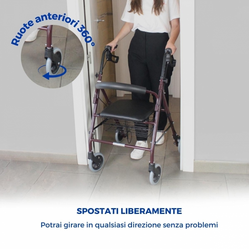 Questo incredibile pack è composto dal deambulatore Escorial in bordeaux e da un cuscino da decubito appositamente pensato per i deambulatori per anziani.