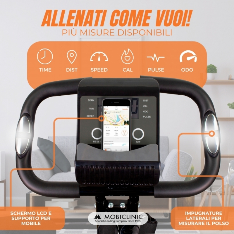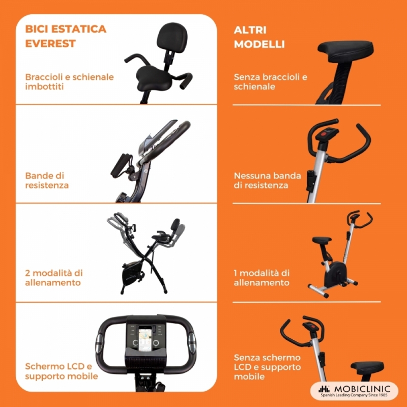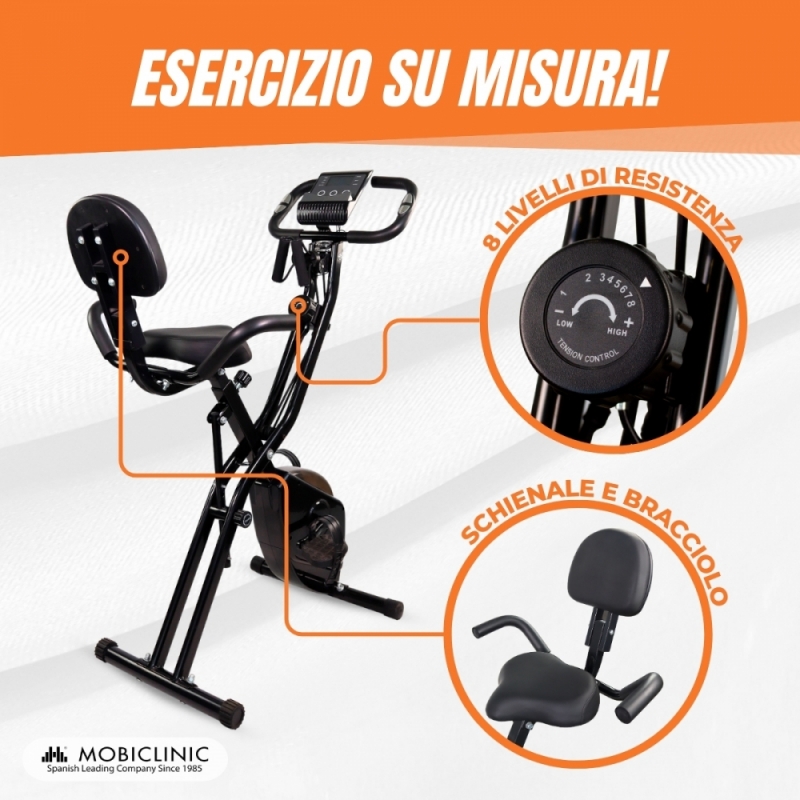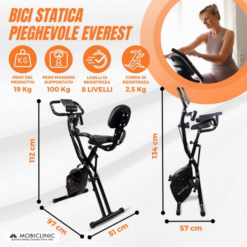 Cyclette pieghevole| 8 resistenze regolabili| Schermo LCD| Sedile regolabile in 4 posizioni | EVEREST | Mobiclinic