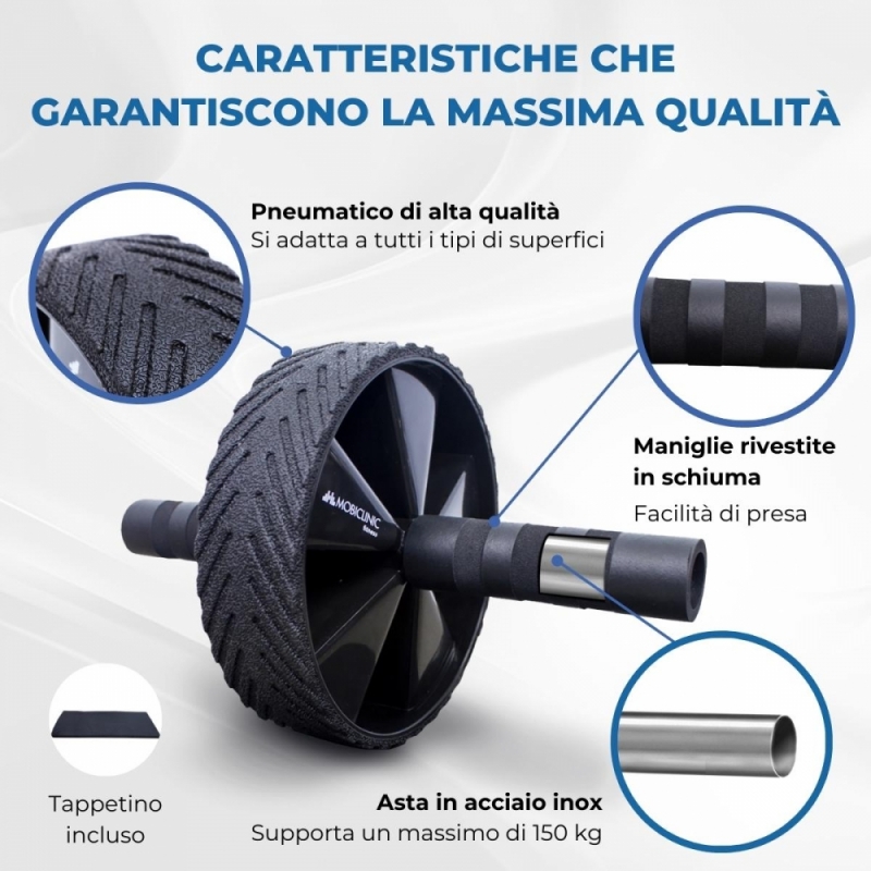 STABILITÀ - La struttura di questo rullo per addominali è forte e robusta. La sua asta in acciaio inossidabile e i pneumatici premium consentono a questo rullo addominale fitness di sostenere un peso massimo fino a 150 kg senza oscillare. Allo stesso modo, le sue aste garantiscono una presa che renderà i tuoi esercizi più stabili.