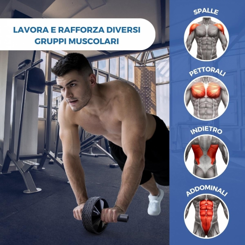 MULTIFUNZIONALE : con questa ruota addominale puoi allenare intensamente gli addominali sia in superficie che in profondità, così come allenare i glutei e stabilizzare la colonna vertebrale. Inoltre, quando esegui questo esercizio, lavori anche sulla zona delle spalle e della schiena, aumentando la flessibilità e la forza in entrambe le aree.