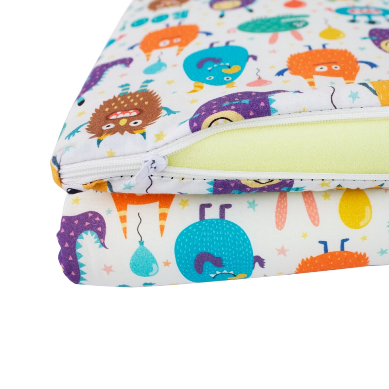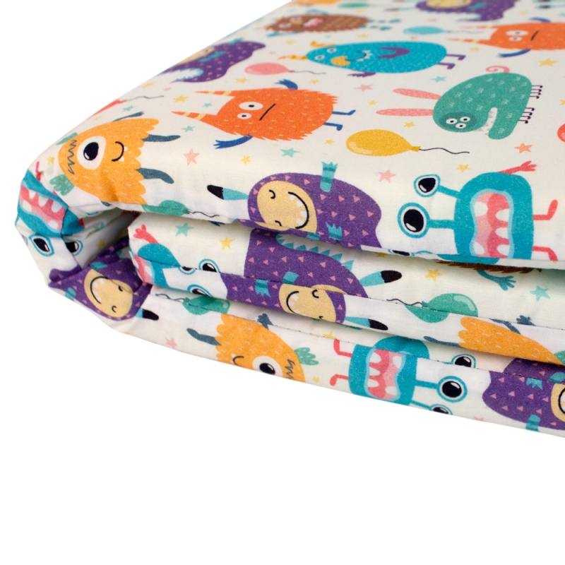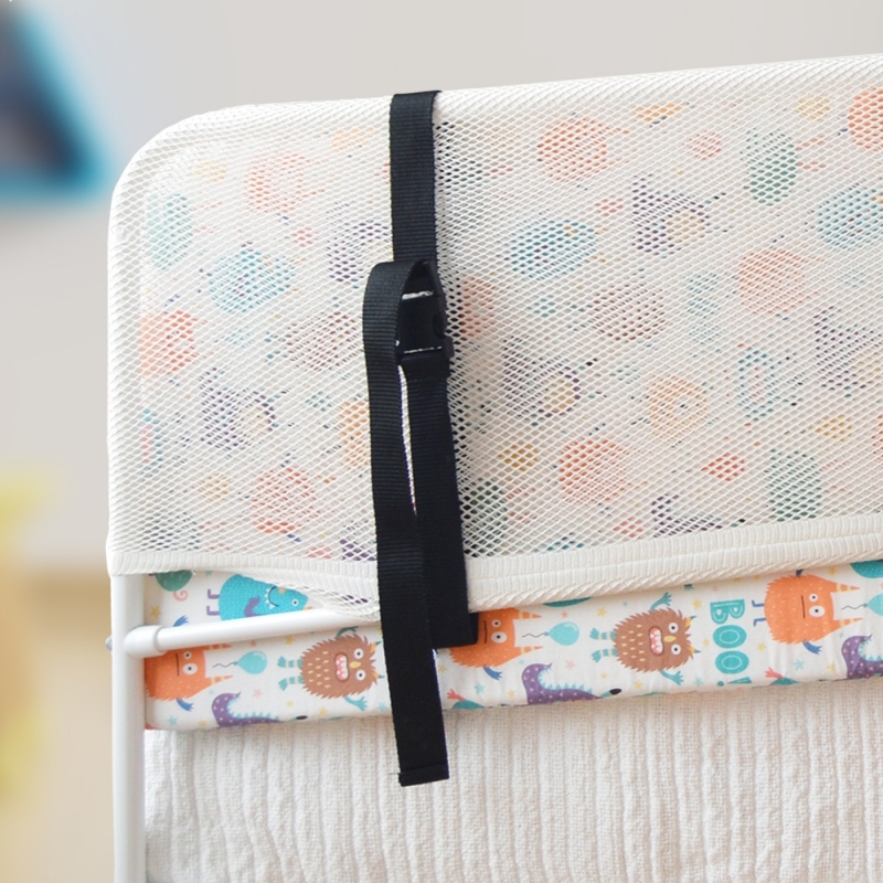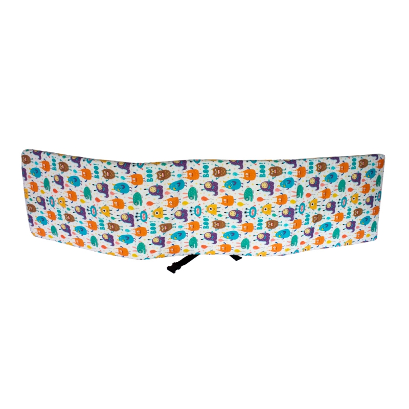 Protezione imbottita per le sponde del letto dei bambini. La sua funzione è quella di evitare che l'utente colpisca le ringhiere di legno o di metallo del letto e allo stesso tempo di prevenire l'intrappolamento accidentale tra le barre del letto. È fatto di schiuma poliuretanica all'interno e ricoperto da una morbida fodera di cotone con stampe per bambini. Ha 3 tupi, che servono per fissare e regolare la protezione alla rotaia come desiderato o necessario.