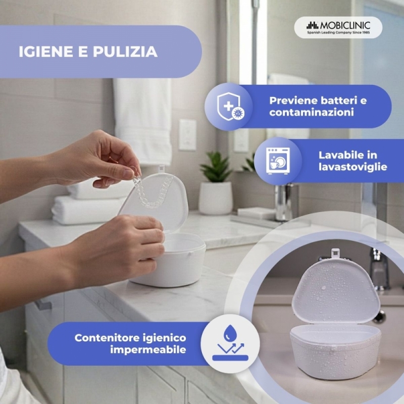 Mantieni la dentiera pulita e priva di impurità con una custodia per protesi dentali conveniente e idonea. L’acquisto di una custodia per protesi dentali a un prezzo giusto è essenziale per garantire l'igiene della protesi, tenere lontano ogni agente microbiologico ed evitare possibili rotture.