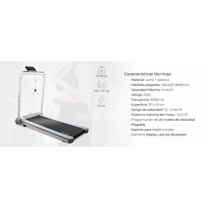 Tapis roulant pieghevole | Elettrico | Display LED | 14km/h | APP allenamento | Supporto dispositivo| Tibet | Mobiclinic