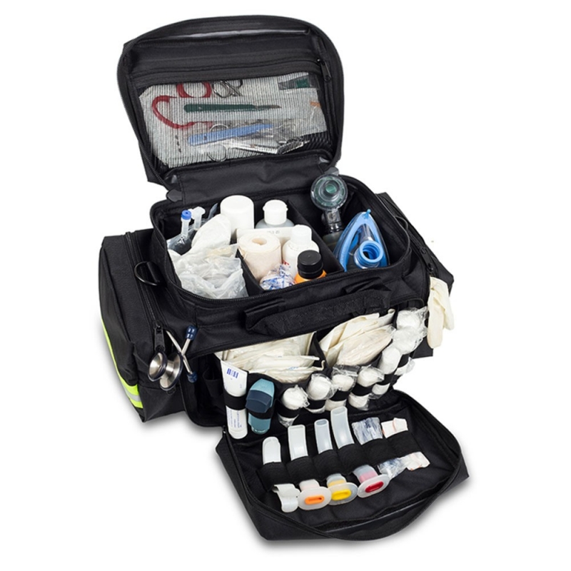 Lo zaino per emergenze mediche è stato progettato per contenere le attrezzature mediche più delicate e mantenerle protette. La borsa per medico è suddivisa in 4 scomparti di media capacità e in uno scomparto allungato di grande capacità.
