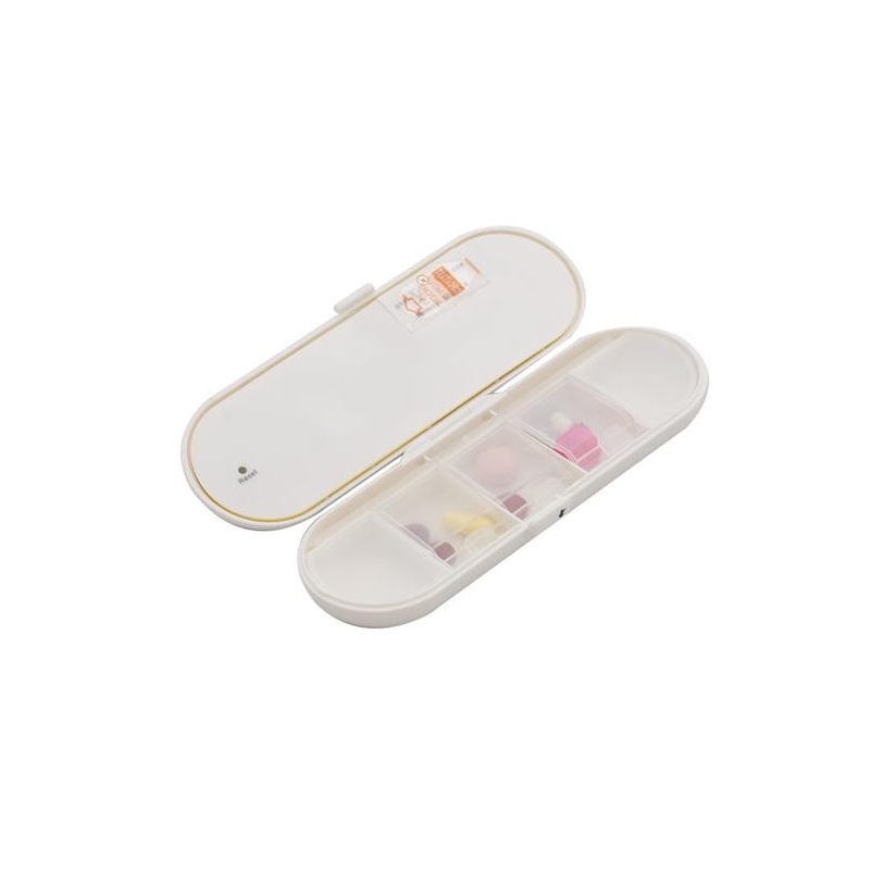 Portapillole con orologio digitale da 37 sveglie quotidiane (possibilità di attivare un allarme ogni mezz’ora). All’interno, è provvisto di cinque scomparti per pillole. Il portapillole settimanale con sveglie aiuta a organizzare le medicine e a ricordarne l’assunzione.