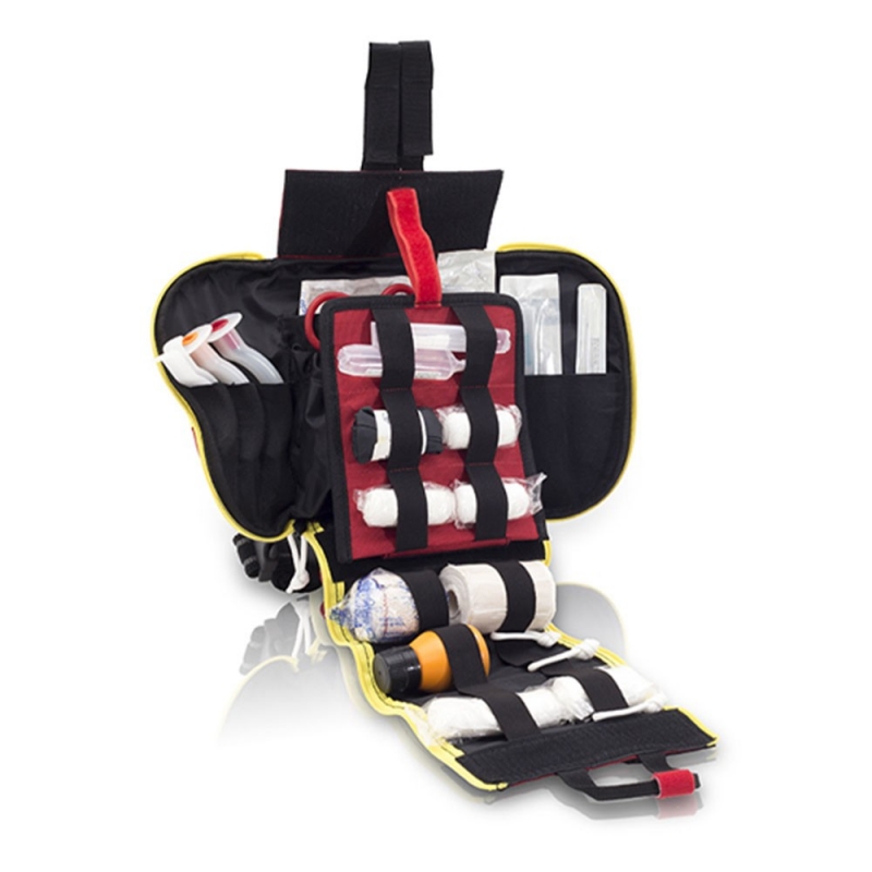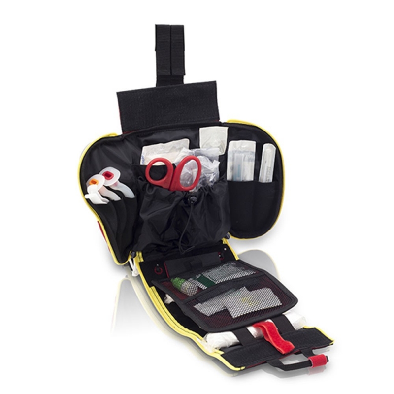 QUICKAIDS Borsa di pronto soccorso paramedico per gamba. Le sue dimensioni e la sua grande capacità consentono di contenere una maggiore quantità di materiale e strumenti per le tue operazioni. Il suo doppio sistema di chiusura, regolabile in altezza, è dotato di elastici antiscivolo per adattarlo alla gamba. Presenta un pannello Molle sulla parte posteriore che consente di agganciarlo ad altre tasche, borse e gilet. Strisce riflettenti sulla parte anteriore e sui lati, linguette di chiusura fosforescenti e cerniere riflettenti. Sistema d'apertura rapido con doppia zip. Cinghie elastiche regolabili con velcro. Foro di drenaggio nella base. Parte anteriore per l'identificazione con velcro. Pezzo di velcro rosso rimovibile per identificare la maniglia di apertura principale. Interno divisibile in due parti grazie alla patta centrale rimovibile. Elastici per vari materiali e tasche in rete. Pannelli laterali con tasche elastiche di grande capacità. Tasca centrale regolabile di grande capacità.