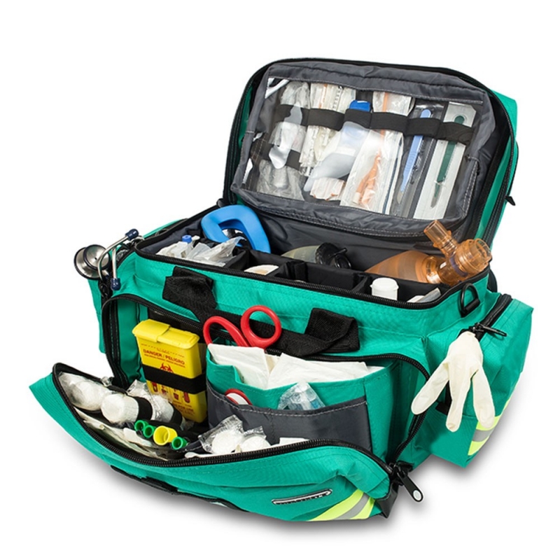 Borsa di emergenza di Basic Life Support imbottita e di grande capacità, progettata per ospitare le attrezzature mediche più delicate. All'interno, è suddiviso in 4 scomparti di media capacità e uno scomparto allungato di grande capacità. La borsa medica di emergenza ha una tasca trasparente situata sulla patta interna, progettata per una facile visualizzazione e chiusura, grazie agli elastici di cui è dotata. Inoltre, lo zaino di emergenza di grande capacità ha cinque tasche esterne, una sul retro e una in alto, diafane, e una tasca frontale suddivisa all'interno con tasche ed elastici. La base di questa borsa di emergenza è fatta di tela cerata, un tessuto impermeabile che eviterà possibili macchie in caso di fuoriuscita di liquidi. Caratteristiche della borsa di emergenza di grande capacità: Peso: 1,79 kg Dimensioni: 55 x 31,5 x 33 cm Capacità: 37,83 litri Materiale: poliestere 600D Colore: verde Base in telone (materiale impermeabile) Cerniere pesanti Strisce riflettenti notte/giorno Materiale lavabile Maniglie e spallacci rinforzati Porta carte esterne Tasca esterna superiore trasparente per contenere una lista di forniture mediche. ATTREZZATURA MEDICA NON INCLUSA Ci piace questa borsa per le emergenze: - Il suo materiale lavabile: che permette di rimuovere facilmente le macchie in caso di fuoriuscite di liquidi. - Le sue tasche multiple: che migliorano l'organizzazione in modo significativo. - La sua capacità: con una capacità di più di 37 litri per organizzare tutto il materiale di emergenza.