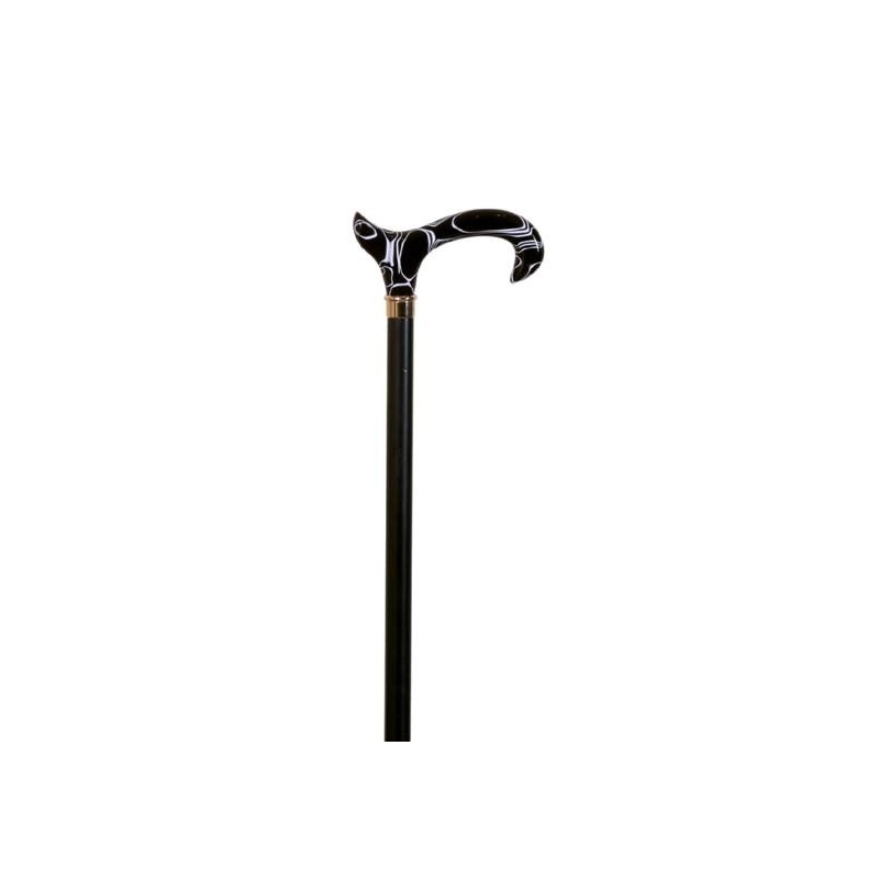 Questo bastone da passeggio è realizzata in legno di faggio nero e manico derby in metacrilato nero.