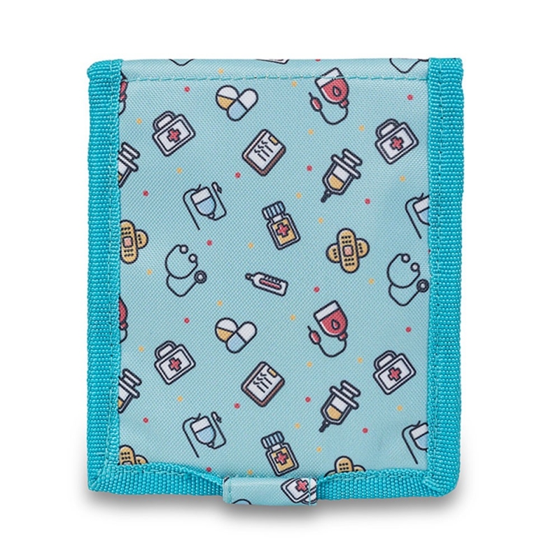 L'organizer per infermieristica dalle dimensioni ridotte comprende diversi scomparti, in modo da poter riporre tutto il necessario: forbici, tappi per le orecchie, torcia, pinzette, penna, nastro adesivo, appunti per l'assistenza infermieristica e tutti gli strumenti medici necessari.