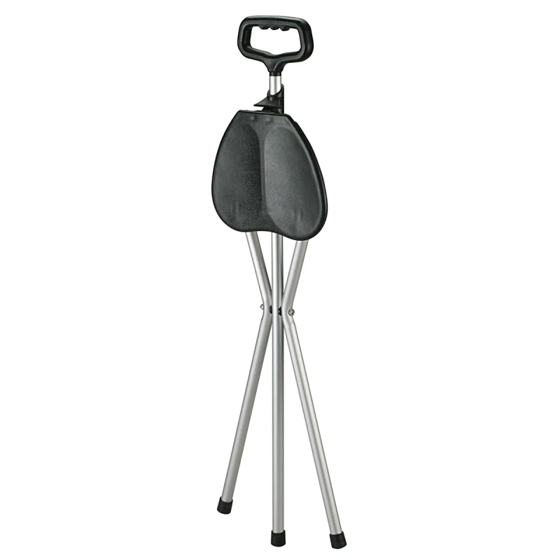 Noi, ti proponiamo questa soluzione leggera, facile e soprattutto utile: il bastone treppiedi con seduta!