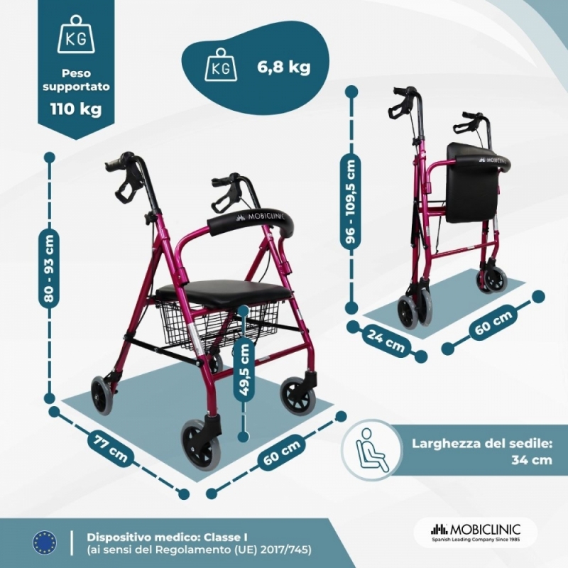 - Peso deambulatore: 6,8 Kg.