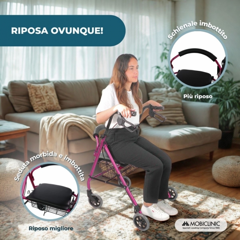 Questo deambulatore a 4 ruote ci piace per: