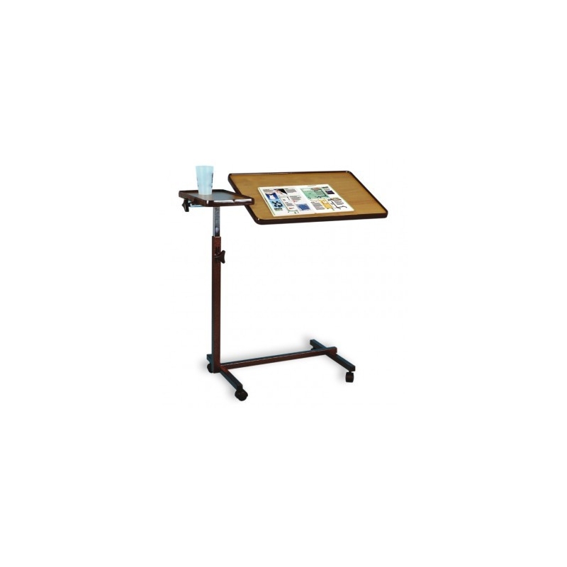 Questo tavolino ha un piano più grande che può essere inclinato fino a 90º in entrambe le direzioni e un piano fisso più piccolo. Allo stesso modo, per garantire una maggiore sicurezza, il tavolo ha un bordo esterno per evitare la caduta di oggetti.
