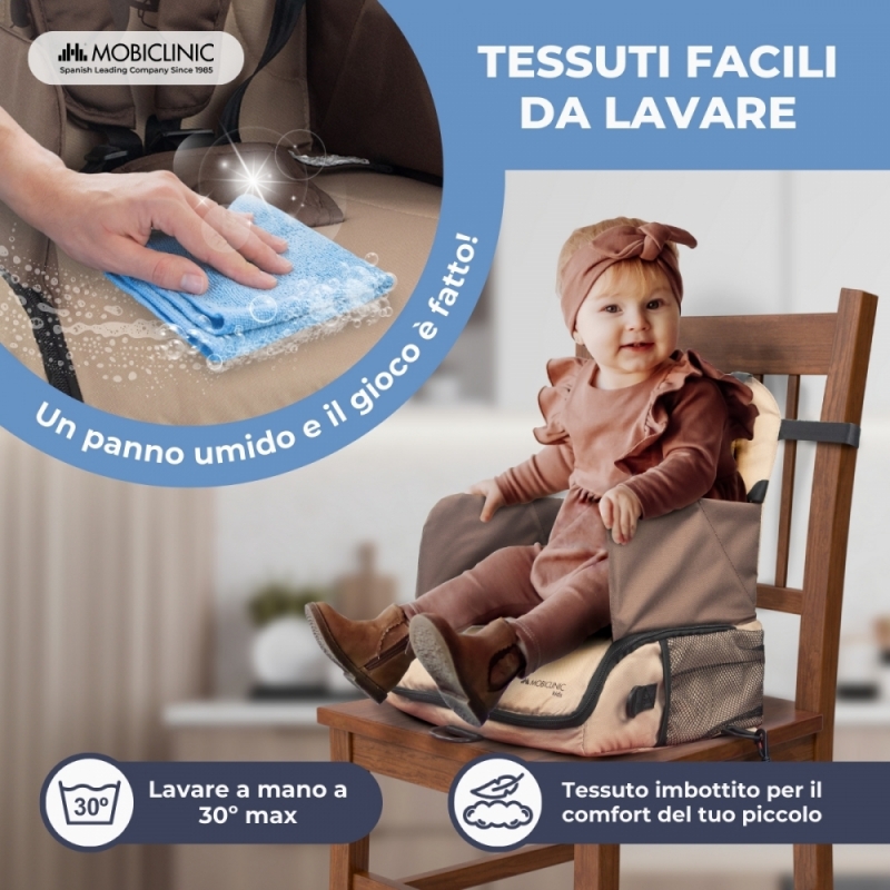 FACILE MANUTENZIONE : Grazie al materiale con cui è stato fabbricato il seggiolone, è sufficiente passare un panno con acqua (fino a 30º) per rimuovere le macchie rimaste su di esso.
