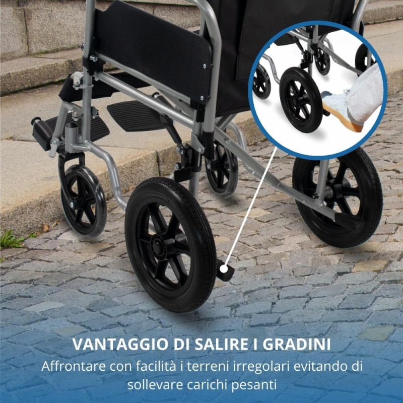 - La sedia a rotelle è pieghevole per un facile trasporto e stoccaggio.
