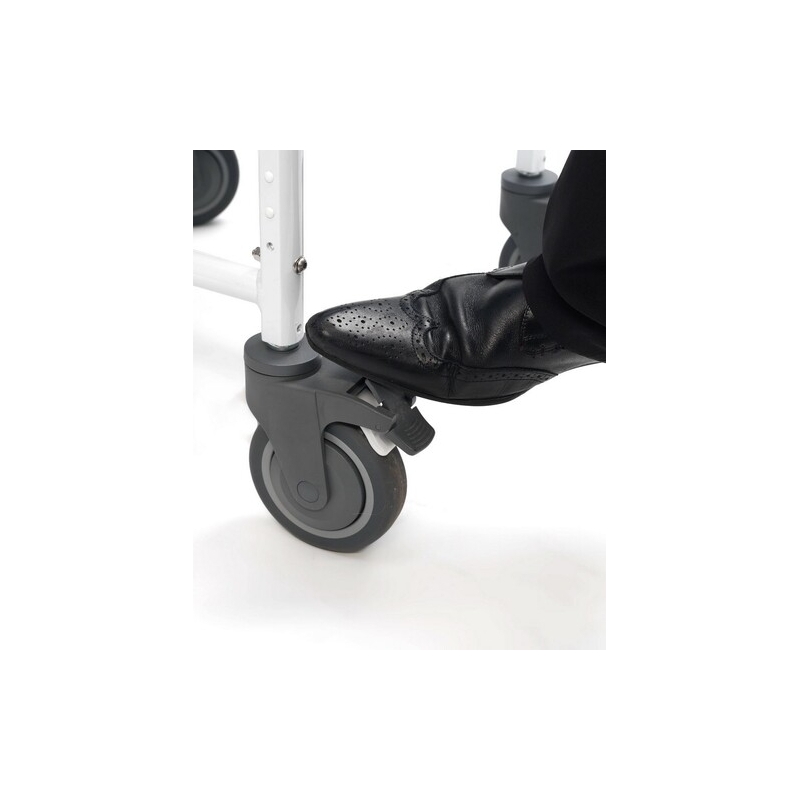 Questa sedia da doccia comoda Aston offre funzionalità, comfort e qualità alla doccia del tuo paziente. Può essere utilizzata come doccia e wc grazie alla sua attrezzatura. Ha tutti i progressi in termini di manovrabilità e comfort: quattro ruote multidirezionali con freno, braccioli morbidi e facili da ripiegare, un poggiapiedi pieghevole, rimovibile e regolabile in altezza, un sedile flessibile con secchio rimovibile per uso wc. Il sedile e lo schienale sono realizzati in schiuma ad alta densità, indeformabile, impermeabile e disinfettabile. Il secchio di grande capacità (5 litri) con coperchio può essere rimosso dal retro. Lo schienale può essere rimosso per un facile trasporto.
