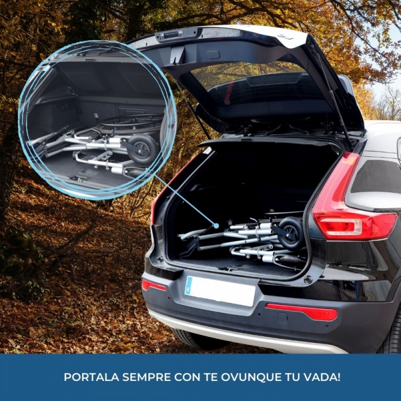 Include il sistema Quick Release sulle ruote posteriori, che consente di rimuoverle rapidamente premendo un solo pulsante .