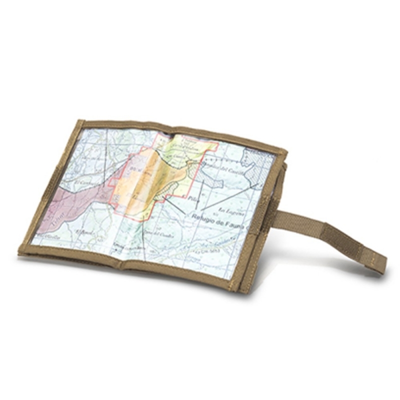 "MAPS Bracciale coyote brown 1000D nylon Concepito per portare in modo visibile sia mappe topografiche che varie informazioni e documenti importanti, permettendone una rapida consultazione. Con elastici per adattarsi all'avambraccio e con laccio portapenne e tasca ausiliaria."