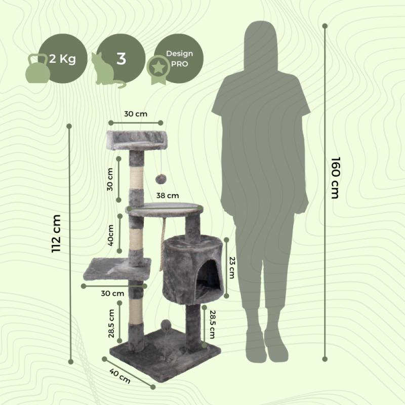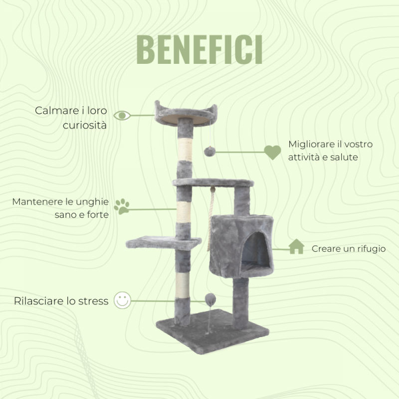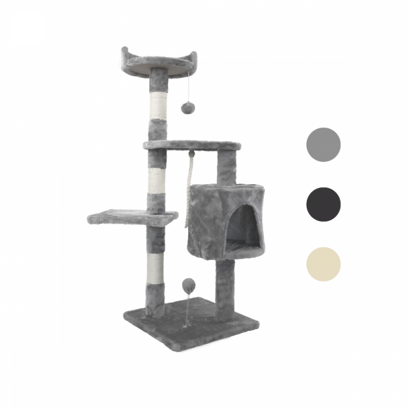 - Due colonne rialzate: le colonne perfezionano il design e la struttura dispone di una corda per far sì che il tuo gatto possa giocare e alleviare lo stress allo stesso tempo.