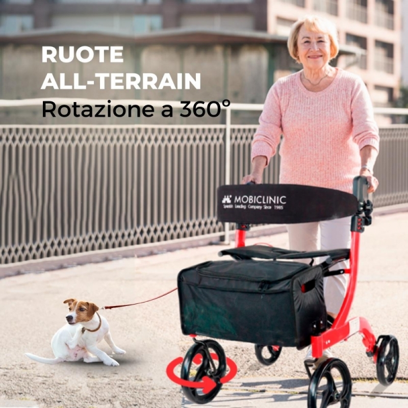 Grande deambulatore a quattro ruote | Pieghevole | Sedile e schienale | Cestino anteriore | Invicto X1 | Mobiclinic Pro