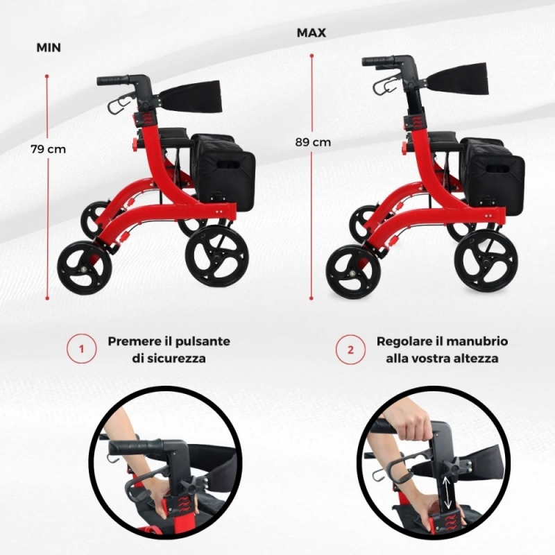- Altezza totale: 79-89 cm (5 posizioni del manubrio)
