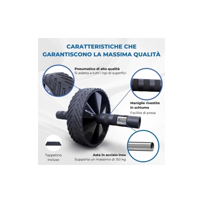 La struttura di questo rullo è forte e robusta , poiché l'asta in acciaio inossidabile e gli pneumatici di alta qualità consentono a questo rullo fitness di sostenere un peso massimo fino a 150 kg senza oscillare . Allo stesso modo, le sue aste garantiscono una presa che renderà i tuoi esercizi molto più stabili.
