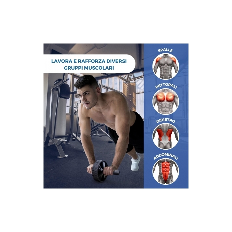 - Gli allenamenti con un rullo addominale contribuiscono a un allenamento total body. Con questo accessorio sportivo puoi allenare intensamente gli addominali sia in superficie che in profondità, così come allenare i glutei e stabilizzare la colonna vertebrale. Inoltre, quando ti alleni con il rullo addominale, lavori anche la zona delle spalle e della schiena, aumentando la flessibilità e la forza di entrambe le zone.