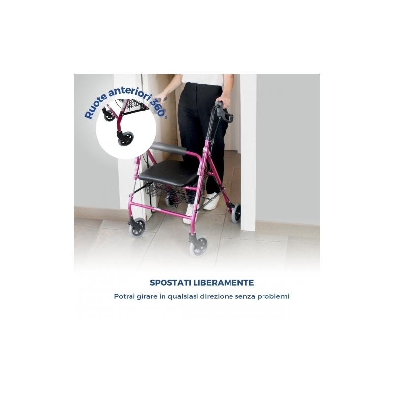 REGOLABILE : per garantire il massimo adattamento e comfort nell'uso, questo deambulatore è regolato in base all'altezza dell'utente.