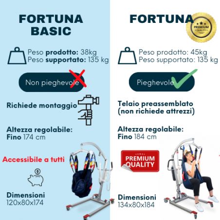 Il sollevatore ortopedico Fortuna Basic viene fornito smontato ed è facile da usare, grazie ai suoi comandi intuitivi . Utilizzando il telecomando , è possibile controllare il braccio di sollevamento semplicemente premendo i pulsanti "su" e "giù". Include anche un pulsante di emergenza per il sollevamento o l'abbassamento manuale del paziente, per riportarlo nella posizione originale. Il sollevatore si arresta una volta rilasciati i pulsanti. Questo permette a chiunque di imparare rapidamente a utilizzarlo.